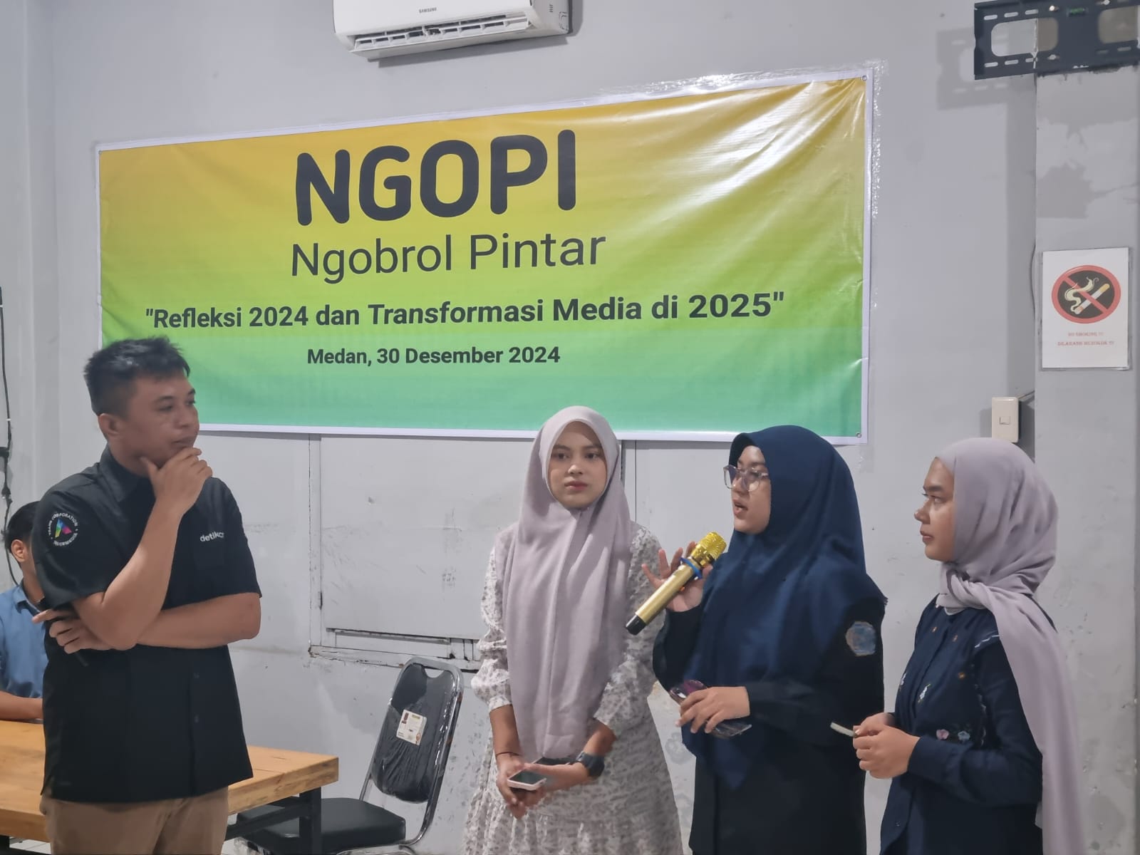 Hal itu disampaikan oleh Baringin dalam acara Ngobrol Pintar (Ngopi) dengan tema ‘Refleksi 2024 dan Transformasi Media di 2025’. Acara tersebut dihadiri oleh puluhan anak muda di Kota Medan, Sumut.